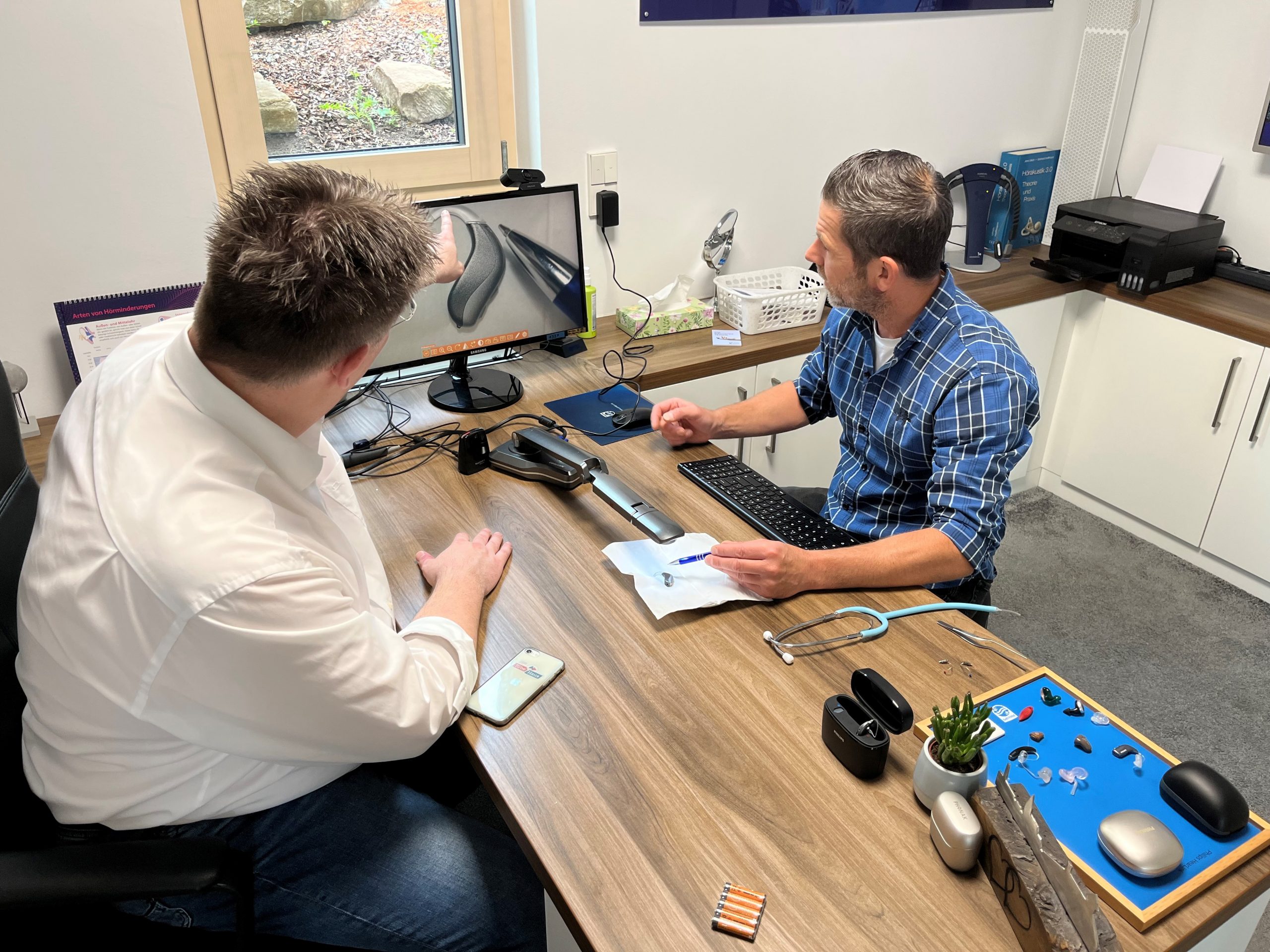 Er führt technische Überprüfungen an den Hörsystemen durch, dokumentiert Auffälligkeiten und bereitet alle Ergebnisse für die anschließende Beratung vor.